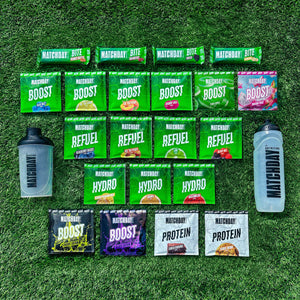 Dafür haben wir auf Grundlage neuester wissenschaftlichen Studien für ALLE Phasen des Trainings und Spiels MATCHDAY NUTRITION® entwickelt!