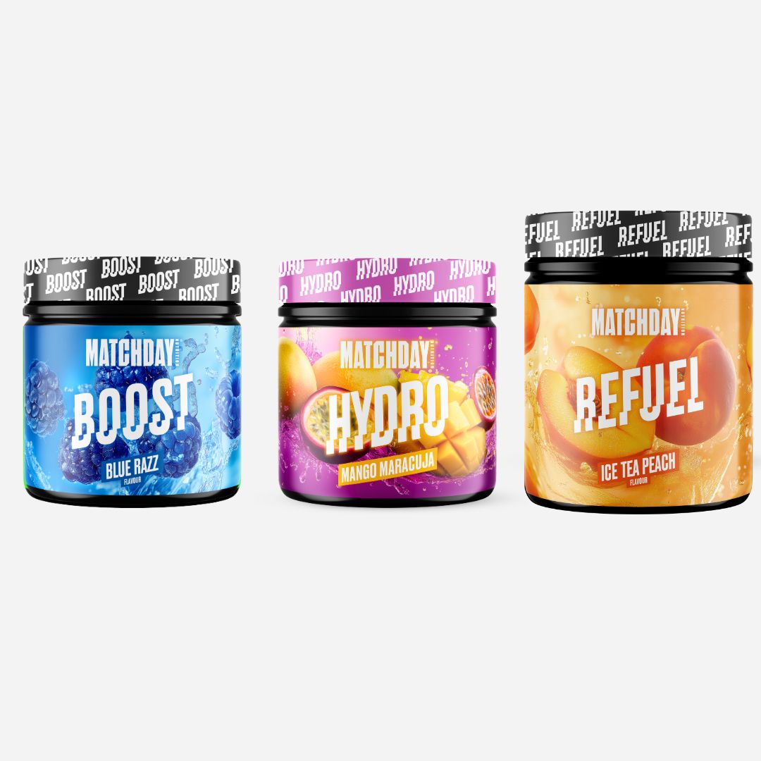 Dafür haben wir auf Grundlage neuester wissenschaftlichen Studien für ALLE Phasen des Trainings und Spiels MATCHDAY NUTRITION® entwickelt!