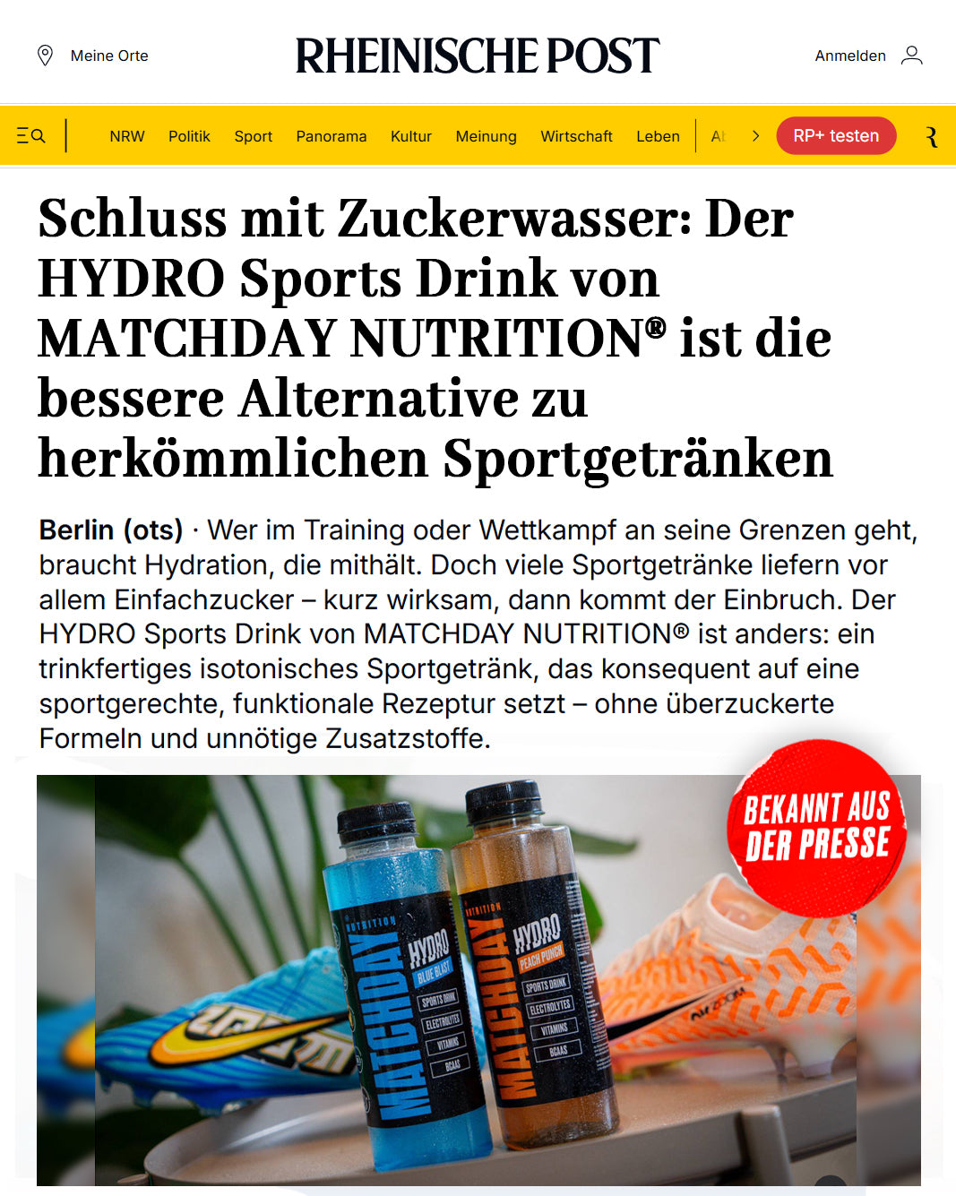 Ja – HYDRO ist ein funktionales Getränk mit Vitaminen & Mineralstoffen. Auch für Kinder/Jugendliche geeignet – z. B. bei Sport, Training, Turnieren
